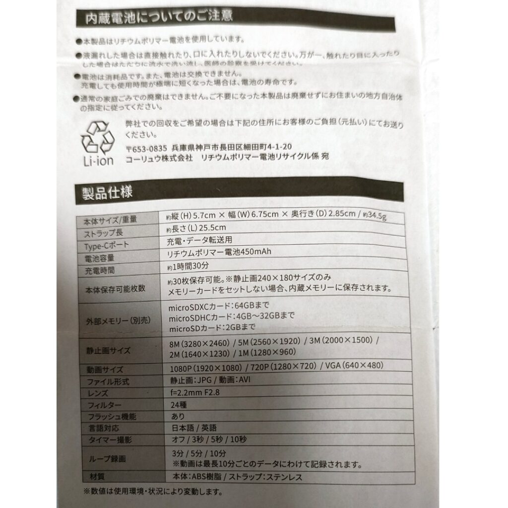 トイカメラのスペック